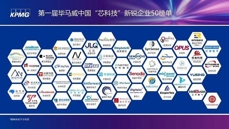 毕马威华振会计师事务所为国际四大会计事务所之一,此次于中国所举办的「毕马威中国第一届‘芯科技’新锐企业50评选」竞赛,参加厂商高达数百家公司,评审团队包括毕马威专家及合伙人、半导体领域知名企业、半导体协会、人工智能行业联盟及相关专家学者,经过一年以上的评选时间,亲自走访参赛厂商实际访谈,超过600小时的审核调查,才完成此一榜单。核心评选维度主要考虑六项指标:技术和商业模式的创新、估值与资本市场认可、半导体行业协会认可度、市场认可度、财务健康状况、团队能力,以2020 年半导体成长的四大应用领域5G通信、人工智能、自动驾驶与物联网切入,评选出最终入围的优良企业。